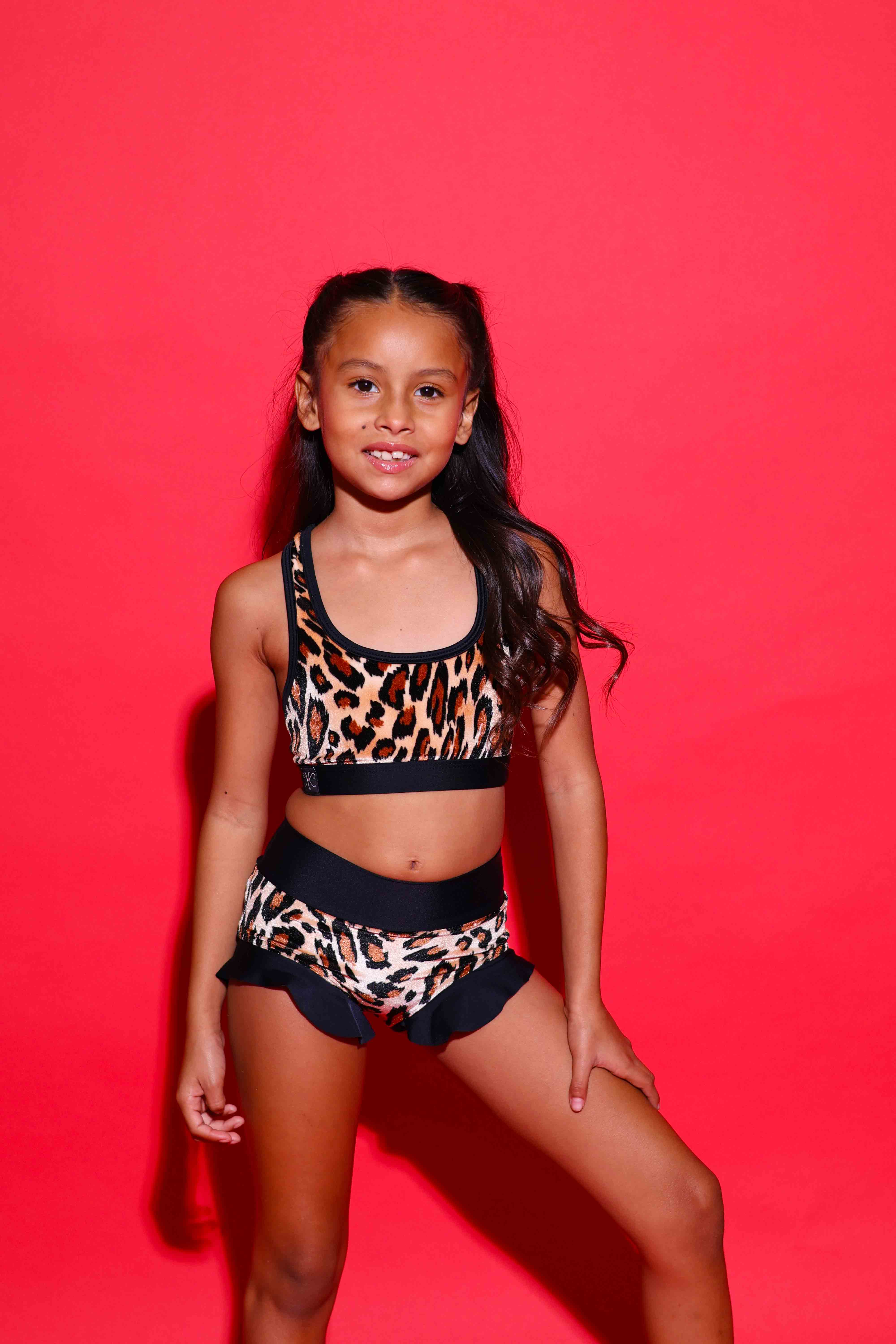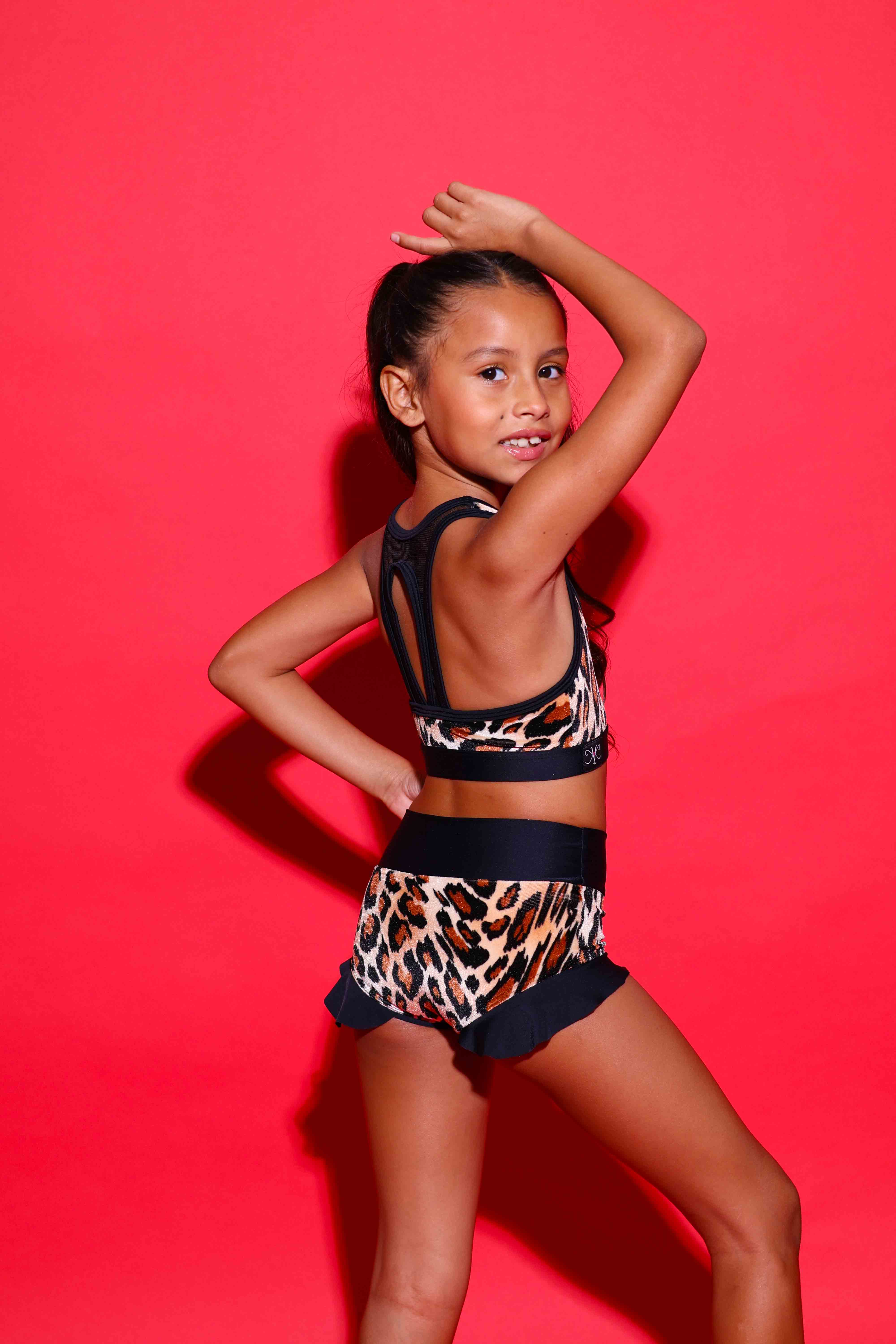 The Lolita Bra Top is a cute, tank style bra top with a fun contrasting trim design. The back also has a unique mesh racerback design! Your dancer can move comfortably, and confidently in our breathable, fully lined designs. The high quality spandex/nylon fabric allows for easy movement, and provides strength, and durability for your dancer.